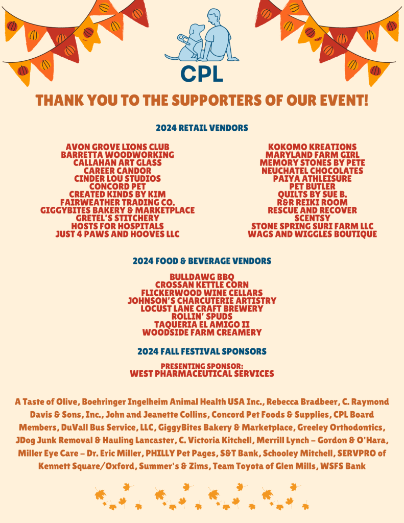 Join Canine Partners for Life on Saturday, September 21 for our Fall Festival featuring Cow Bingo! This FREE, fun-filled day will take place from 12:00-4:00pm at CPL’s campus, 334 Faggs Manor Road, Cochranville, PA 19330. Spend the afternoon visiting with puppies at our puppy kissing booth, watching service dog demonstrations, touring our kennel, shopping with local vendors, stopping at the CPL mission booths, and, don’t forget to bring your appetite because we will have a variety of food trucks! The event is held rain or shine.