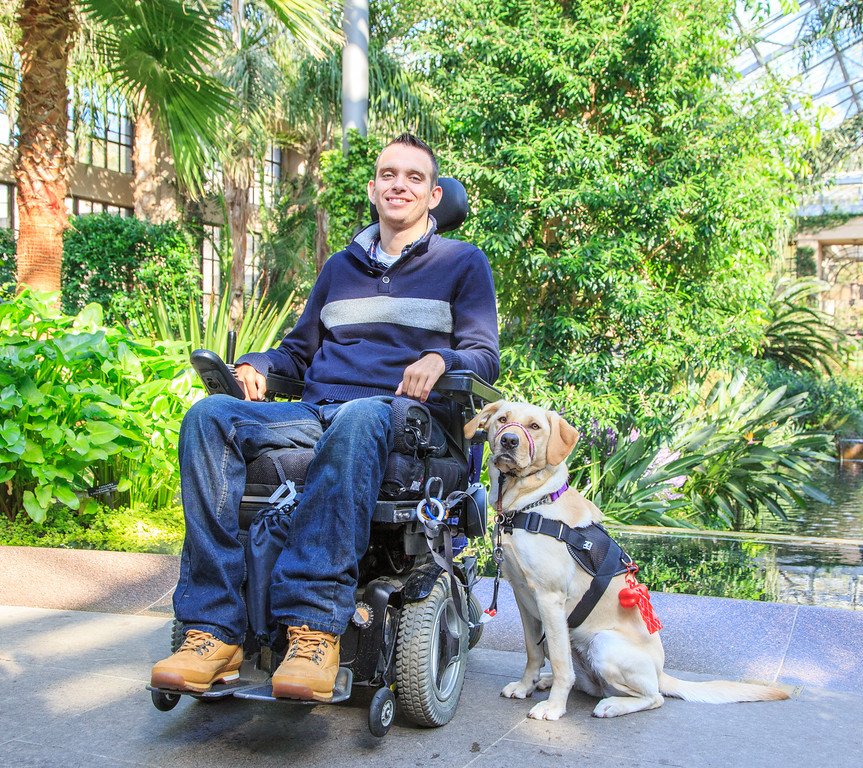 In the few months they have been home, Topper has already made life easier for Connor. He can rely on her when he goes out in public and at home. “It’s not as stressful to go out. I don’t have to worry about dropping something or opening doors. I don’t have to worry about all the ‘what if’s’ when I am out because I’m not alone anymore.” Not only does Topper assist Connor with tasks such as retrieving items that have been dropped or are inaccessible to Connor, or helping to reposition his body in his power chair or in bed, she also serves as a conversation starter. “Some people see the chair and aren’t sure what to say or expect. When they see a cute dog, it’s easier to converse with people. The dog draws the attention rather than the disability.”