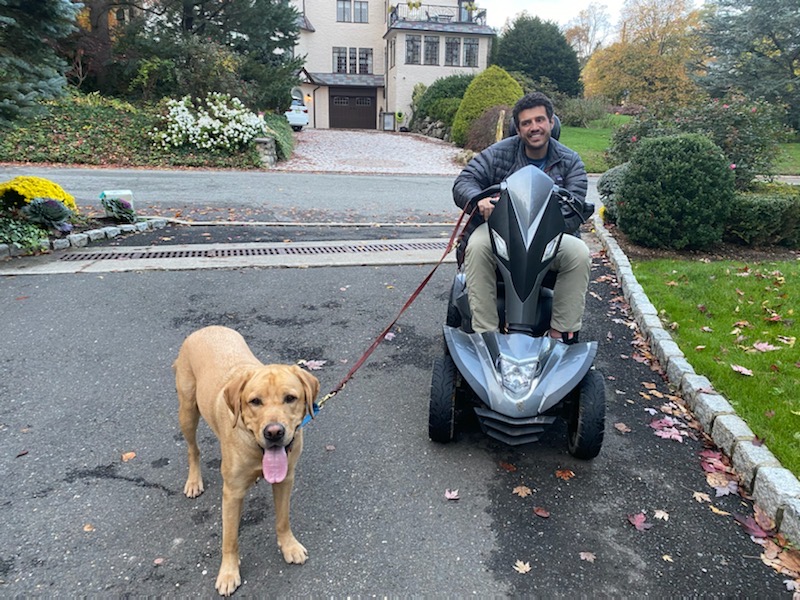 Otis is Richard’s buddy. When everyone is out of the house, the two of them spend quality time together. Richard said, “Although I’m home alone, I’m never alone anymore because I have Otis to help me out.” Along with providing Richard with companionship and love, Otis is trained to pick up his cane if he drops it and to bring his phone or keys to him. Their favorite activity together is going for long walks through the neighborhood. Richard cranks up the speed on his scooter and they go for five miles at a time! Otis loves it!
